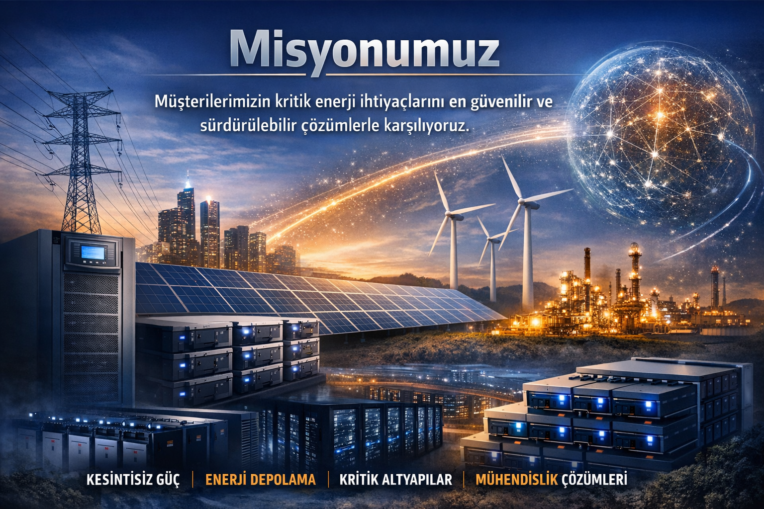 Misyonumuz; müşterilerimizin ihtiyaçlarını doğru analiz ederek, enerji ve güç sistemleri alanında yüksek güvenilirlikte, verimli ve uzun ömürlü çözümler sunmaktır.